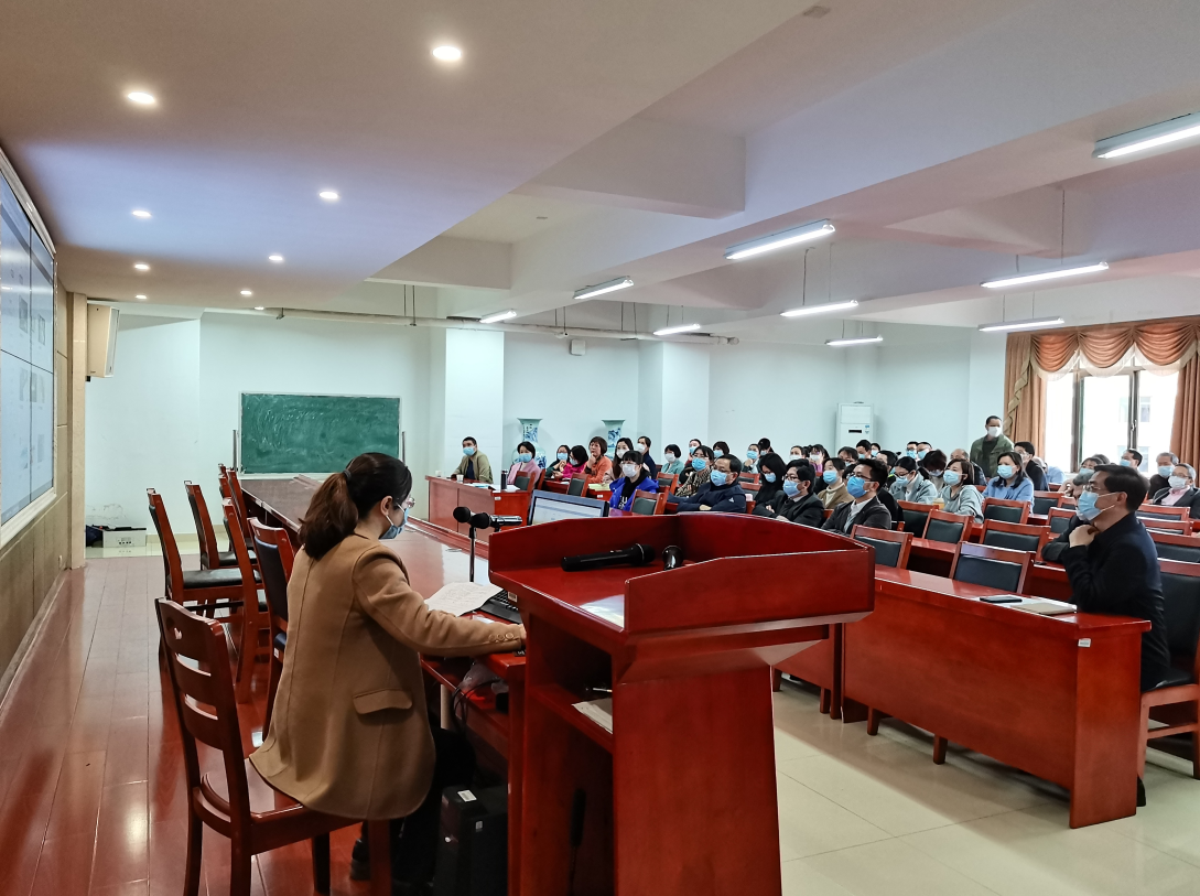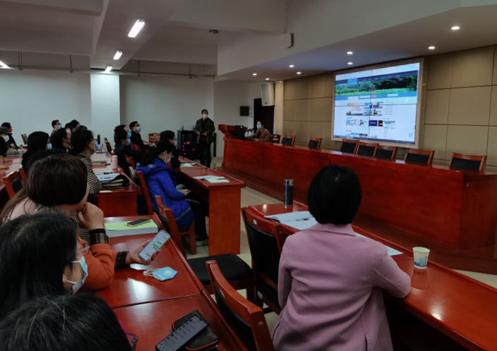 2022年3月29日,”‘一平三端’助力打造混合式智慧课堂“教学研讨培训会在立言楼四楼会议室举行,讲座由邓桂英老师主讲,教务处副处长贺玲、8xbet体育领导及全院教师参加了培训。