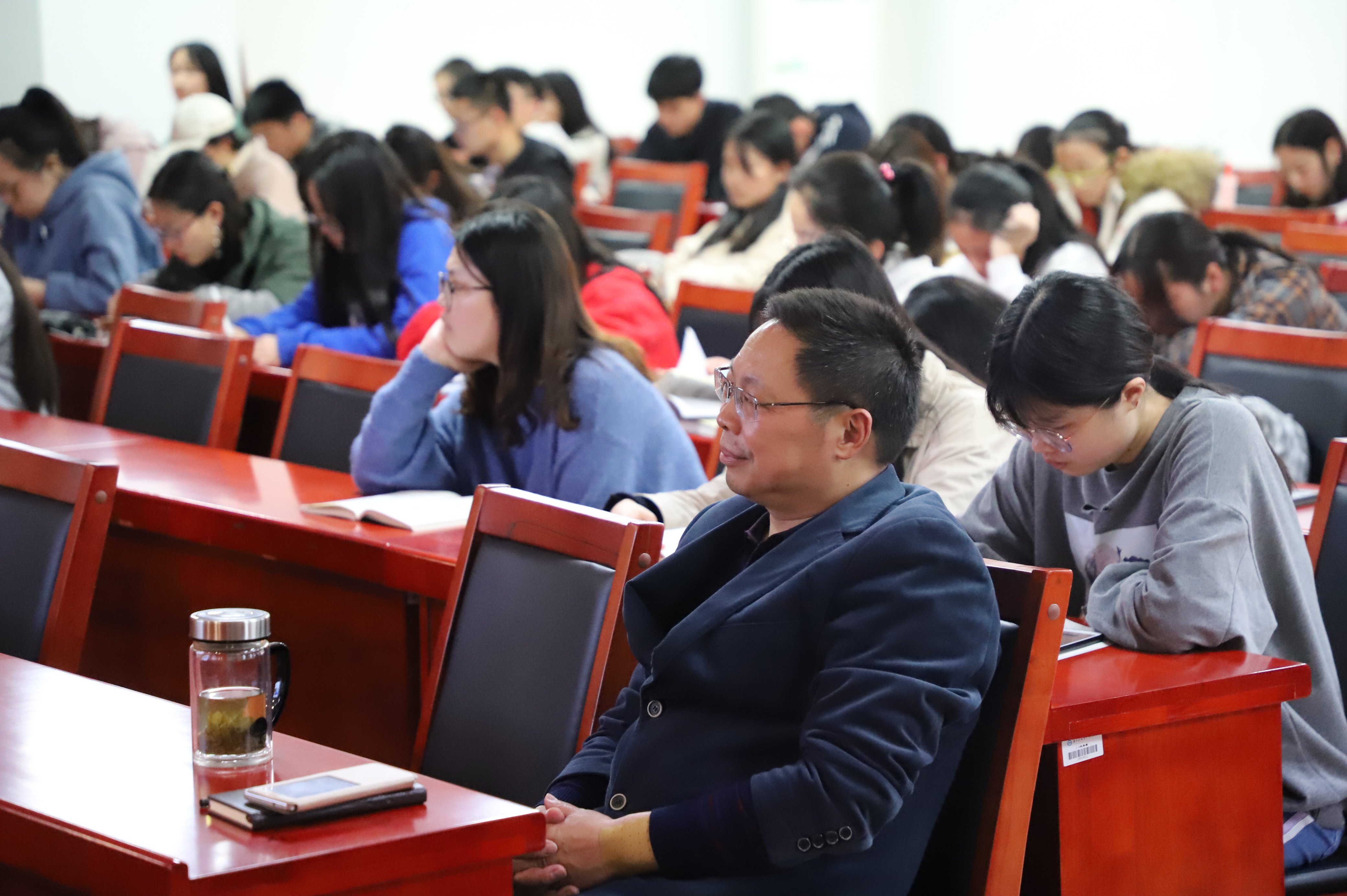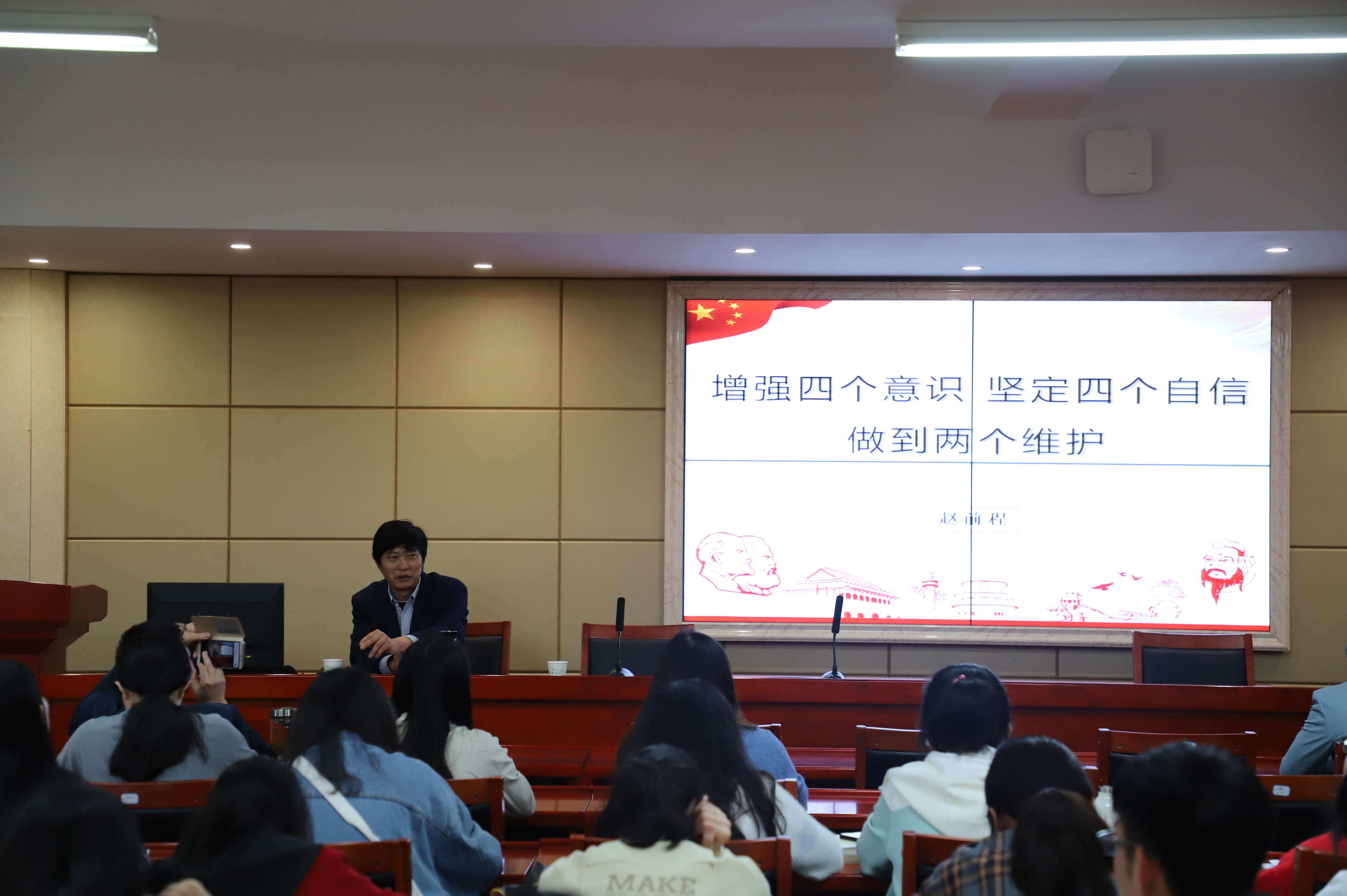 应8xbet体育党委邀请,校党委委员、统战部长赵前程教授于4月16日下午在立言楼4-1报告厅为我院教工第五支部的党员老师和学生入党积极分子讲了一堂主题为“增强四个意识、坚定四个自信、做到两个维护”的精彩党课。