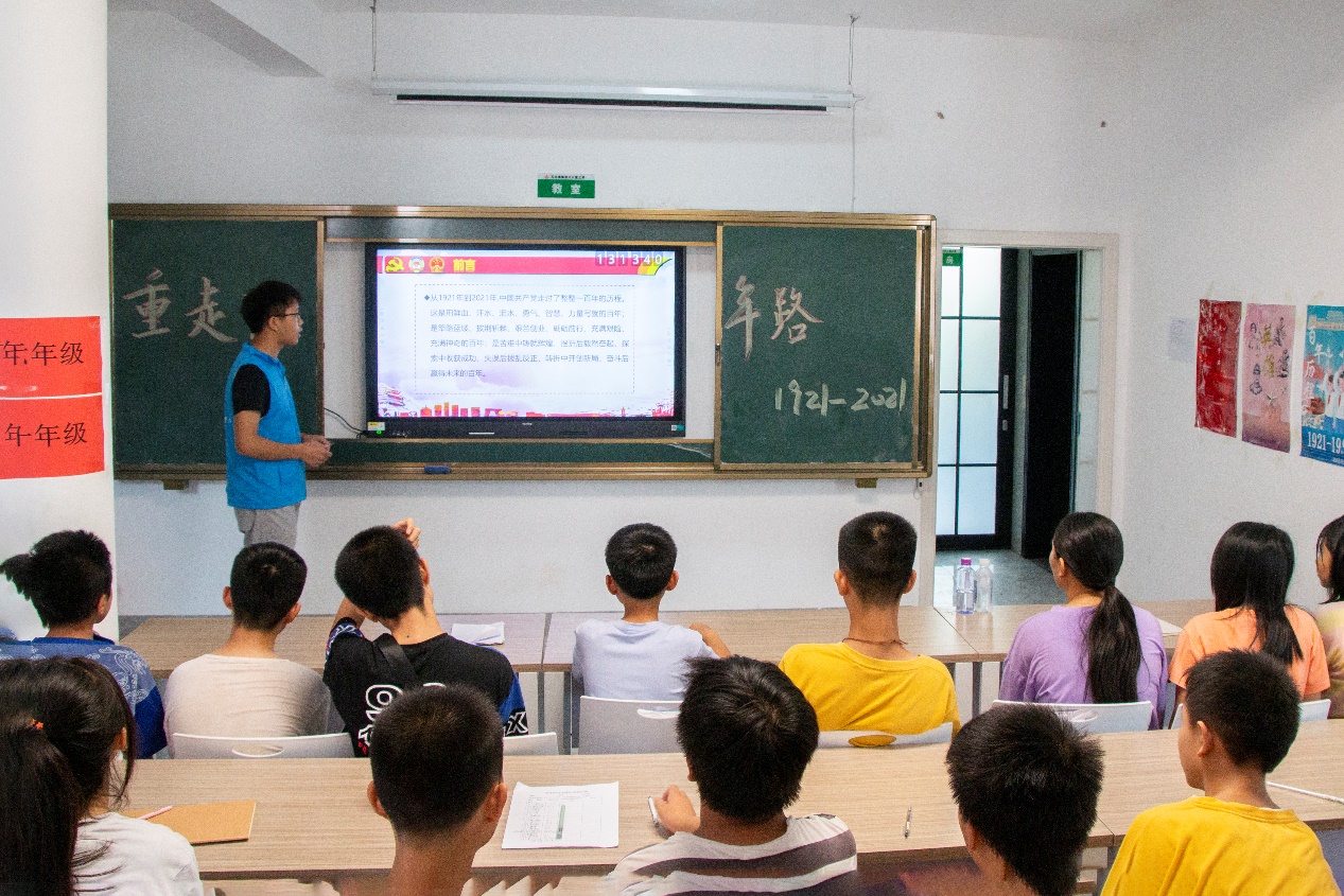 为了让党史学习教育走进留守儿童课堂,7月15日下午,8xbet体育8xbet体育暑期“三下乡”社会实践团队带来一堂以“学党史、强信念”为主题的党史宣讲课。志愿者龙子尧邀请夏昭炎教授为孩子们讲述党史,引导他们走近党、热爱党、拥护党。