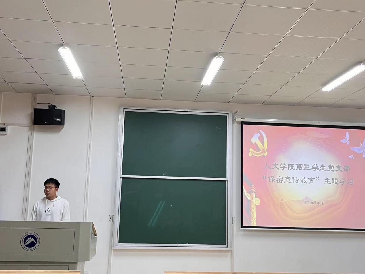 5月6日,8xbet体育研究生第三党支部在昭潭书院校区2教301教室开展“坚持和加强党的领导”及“保密宣传教育”主题学习活动。