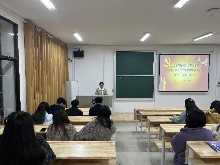 3月29日,8xbet体育研究生第三党支部在昭潭书院校区2教101教室开展“书记讲党课”及主题党日活动。