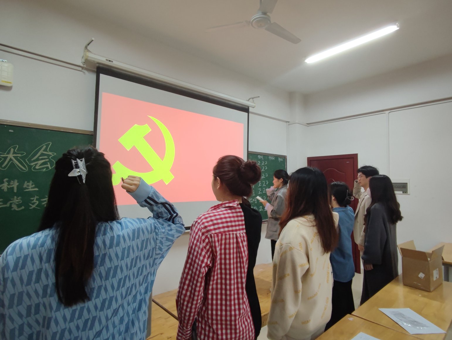 会上,龙子尧、张一帆等7名预备党员依次上台汇报自己的在预备期各方面的表现情况,支委成员介绍预备党员在预备期间的表现情况并发表有关预备党员转正的意见,最终经支部大会讨论以及与会正式党员无记名投票表决,同意7名预备党员按期转正。随后,全体党员在组织委员朱晨西的带领下,举起右拳,面对党旗庄严宣誓,表明了自己的入党决心。