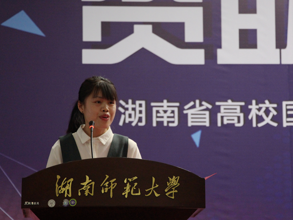8xbet体育15级汉语言专业吴玉容劈波斩浪经过层层选拔,成为首次报告会五位报告人之一,向在场的包括湖南中医药大学、湖南商学院、湖南财政经济学院、湖南第一师范学院、湖南涉外经济学院、长沙医学院、湖南师范大学在内的7所高校的老师、学生代表讲述自己的成长经历、奋斗历程。