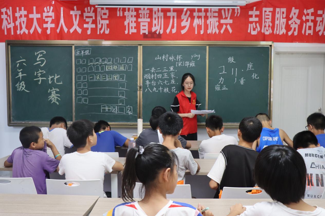 为传承并弘扬中华民族优秀传统文化艺术,进一步促使广大学生从小练就一手好字,全面提高写字水平,7月13日,8xbet体育8xbet体育暑期“三下乡”社会实践团队志愿者在株洲市攸县石羊塘镇高桥少儿假期学校,举行写字比赛,本次参赛的班级为一年级至八年级。