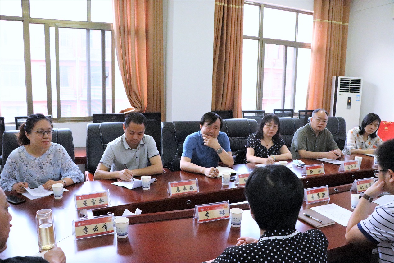 6月7日,燕山大学文法学院副院长丛鑫等一行来我校8xbet体育调研交流。8xbet体育副院长(主持行政工作)李康澄、副院长欧阳萍、外国语学院汉语国际教育系教授李琳等领导和老师在立言楼B505室与燕山大学文法学院来访一行进行了亲切的交流。在交流会上,双方就汉语言文学本科专业建设、中国语言文学学科建设、汉语国际教育学科和师资人才队伍建设等问题进行了交流与探讨。