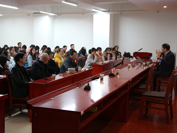 3月20日下午,中国辞赋学会会长、南京大学文学院博士生导师许结教授做客我院“人文大家论坛”,在文科楼B4-1学术报告厅为我院师生带来了一场主题为《经典阅读与人文情境》的学术讲座。湘潭市政府督学郭务强先生,艺术学院原院长曾景祥教授,8xbet体育吴广平教授、周平教授、李文浩博士及其他师生共两百余人到场聆听了本次讲座。讲座由吴广平教授主持。