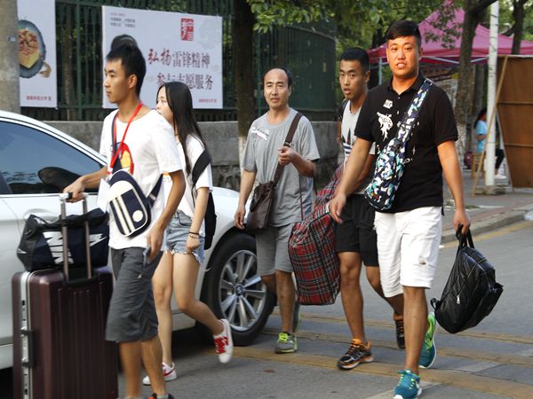下午,长途跋涉后的新生及家长陆陆续续进入校园。找不到宿舍怎么办?行李太多搬不动?别担心,本次迎新中,我院在五区、六区皆设有迎新服务点。下午一点,各部门志愿者便迎着高温,在迎新点开始了每次三小时的站岗执勤。迎新点主要负责帮助新生找到寝室、接待学生家长、帮助新生搬行李、对新生的安全负责并回答新生在注册期间的问题咨询。“迎新点的工作进行得比较顺利,没有遇到什么大问题。”在迎新点守了一天的学生会副主席王健说。本次迎新中,学生会干部不仅在迎新点轮流值班,每人还负责一个寝室的接新工作。