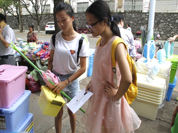“从小父母对我就是自由式管理,很多事情都是我独自去做。而且我从初中开始就住校,所以我比较习惯吧。唯一有点担心的是这边的饭菜口味和我们那边不一样。”这个来自广西梧州的瑶族女孩一边有条不紊地摆放物品,一边笑着向志愿者说道。安排好用品后,她麻利地清洗被单和脏衣服,弯下身子,摆动着浸泡在水里的衣服,又把它从盆里提出来,晃动着小小的胳膊使劲拧干。在舍友外出时,看见宿舍里布满桌面和地面的灰尘,她又一个人认真地打扫起来,擦拭桌柜、清扫垃圾、拖地,似乎都难不倒她。