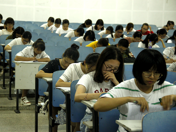 21时整,监考教师宣布考试结束后,考生们纷纷走出考场。17级广告学专业二班的李梦莎颇有些担心自己的成绩,她表示,自高考结束后,就已经很久没有考过试了,因此此次考试全程都感到很紧张。