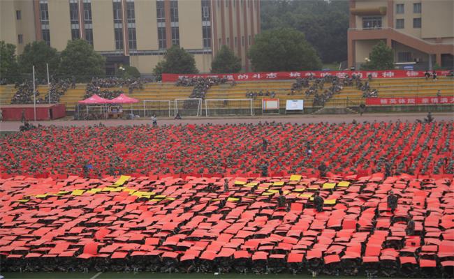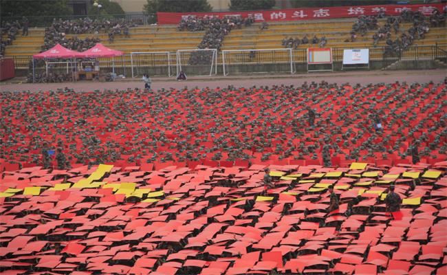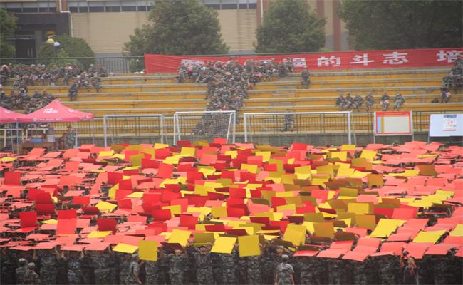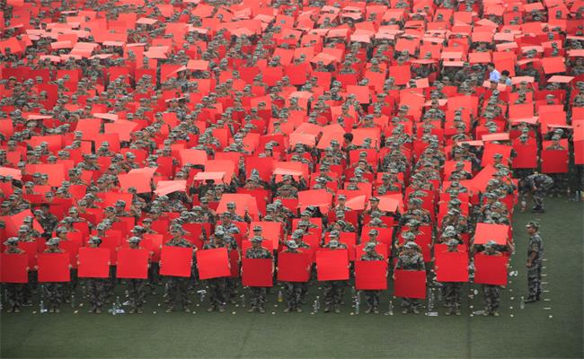 秋意来袭,浩荡绿军装大队,在绿荫田径场上,每人高高举起一块块红黄两面的正方形纸板,今年的新生军训队伍要搞怎样的大事情?10月10日,8xbet体育全体新再次集结于北校田径场,参与全校军训新生摆字活动排练。活动现场由大学生军训团四位大四教官指挥,各排教官负责保持各排现场纪律,组织新生根据总指挥进行大规模的摆字排练。