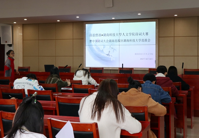为响应传播中华优秀传统文化的号召,传播中华悠久文化精髓,彰显华夏诗词独特魅力。10月14日,我院在文科楼4-1会议室成功举办“诗韵悠扬.8xbet体育8xbet体育诗词大赛暨中国诗词大会湖南选拔区8xbet体育选拔会”,我院学工办赵晗冰老师进行现场监考,我院共18名来自不同专业的学生共同参与此次诗词大赛的激烈角逐。