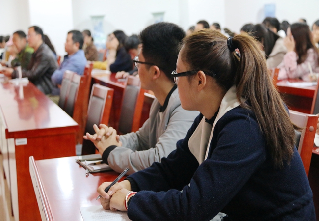 “中国特色社会主义进入新时代,意味着近代以来久经磨难的中华民族迎来了站起来、富起来到强起来的伟大飞跃,迎来了实现中华民族伟大复兴的光明前景”,师生们聚精会神地聆听习近平总书记代表十八届中央委员会,向大会所作的主题为《不忘初心,牢记使命,高举中国特色社会主义伟大旗帜,决胜全面建成小康社会,夺取新时期中国特色社会主义伟大旗帜,为实现中华民族伟大复兴的中国梦不邂奋斗》的报告。观看直播过程中,师生们不时在笔记本上做着记录,认真学习报告精神。