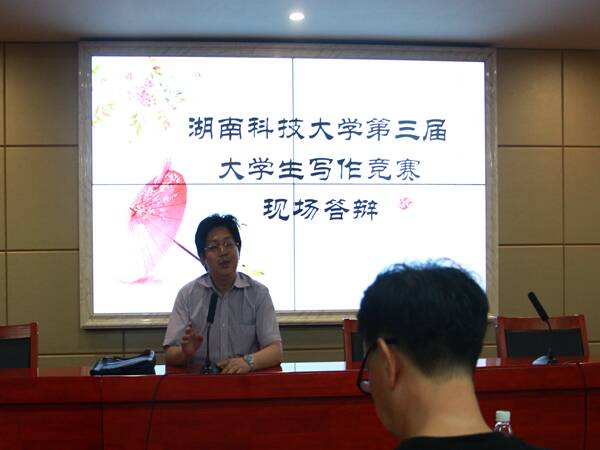 “参加本次答辩会的同学文学知识储备十分丰富,各位同学的表现让我们老师感到满意。”王友胜教授对比赛进行了点评,同时,他还为同学们提出了一些建议:在写作方面,作品一定要先拟好标题,并在适当的时候添加副标题以达到引人入胜的效果,富有内涵而内容新颖的作品会更受喜爱;在现场答辩环节方面,说得好与写得好同样重要,要有一定的应变能力,面对不太了解的问题,切忌冷场,可以尝试从侧面进行回答。此外,王友胜告诫选手们要注重仪表,面带笑容面向观众。