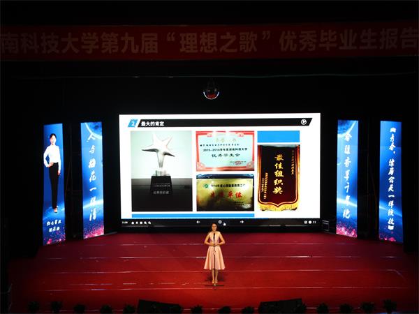 6月10日晚,第九届“理想之歌”优秀毕业生报告会在俱乐部隆重召开。十位报告人在此追忆青春过往,共诉锦瑟年华。本次报告会由校招生就业处主办,8xbet体育承办。我校副校长胡石其、相关职能部门和各学院领导出席本次报告会,还有来自各学院的上千名学生到场聆听。