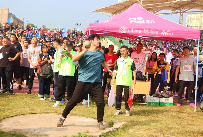 来自17级历史一班的邓佶翔已经是第二次参加铅球比赛了,带着经验来的他准备充分,赛前,每天早晚认真训练,锻炼手臂肌肉。比赛时,他将铅球稳稳托放在锁骨窝,固定好姿势后深吸一口气,伴随着“嘿”的一声,将球用力掷出,身体也因为惯性而转了一圈。遗憾的是以微弱的差距和决赛失之交臂。“挺遗憾的,今年还是没有进入决赛。还有得而复失的失落,不过还是要收拾好心情,为明天的比赛做好准备。”他在赛后这样说道。