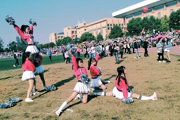 伴随着律动的开场音乐响起,啦啦队员脚踏动感的节拍,表演着她们精心编排后的舞蹈,为运动员加油鼓劲。她们动作整齐,舞姿各具风采,在阳光之下显得格外美丽,有的动感十足,有的灵动活泼,有的曼妙飘逸,精彩的表演瞬间点燃了现场气氛,欢呼声、喝彩声、口号声响彻整个运动场。一场表演结束,还没来得及休息,队员们又转移场地,开始第二场表演,为其他学院的观众带去了这场视听盛宴。随着自由律动的音乐,她们布满汗水的脸上洋溢着灿烂的笑容,有力的脉动张扬着属于花季的灿烂。文艺部的韦柳妮提到这些拉拉队队员为了这场比赛排练了许久,“我们做好了充足的准备,为了向全校展示8xbet体育的风采,拉拉队的成员们都相当努力,而热烈的掌声就是对他们最好的鼓励。”
