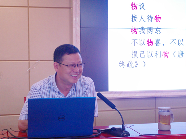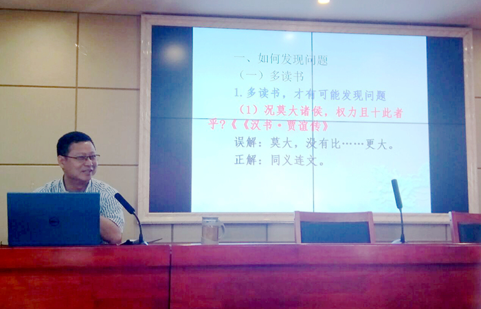 6月22日下午,广西民族大学叶桂郴教授应邀来我校讲学,于文科楼B4-1室为我院师生带来一场题为《训诂法则谈》的讲座。语言系徐前师教授,尹戴忠教授,语言系主任李康澄,秦凤鹤等老师及语言系15、16级学生到场聆听讲座。