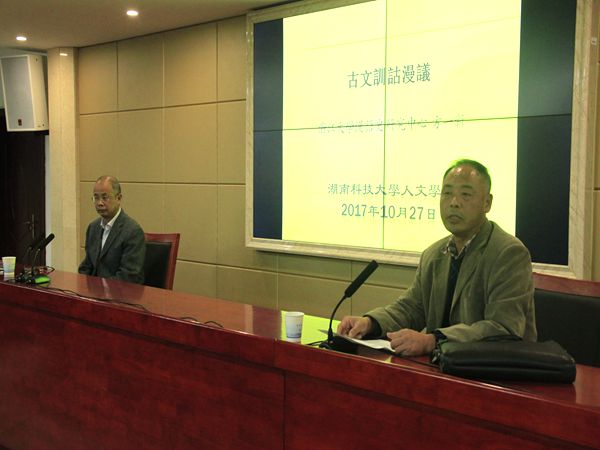 10月27日晚,浙江大学8xbet体育教授、博士生导师方一新先生应我院邀请于文科楼B4-1主讲以“古文训诂漫议”为主题的学术讲座。此次讲座由我院语言系教授徐前师主持,汉语言、汉语言文学专业师生到场聆听。