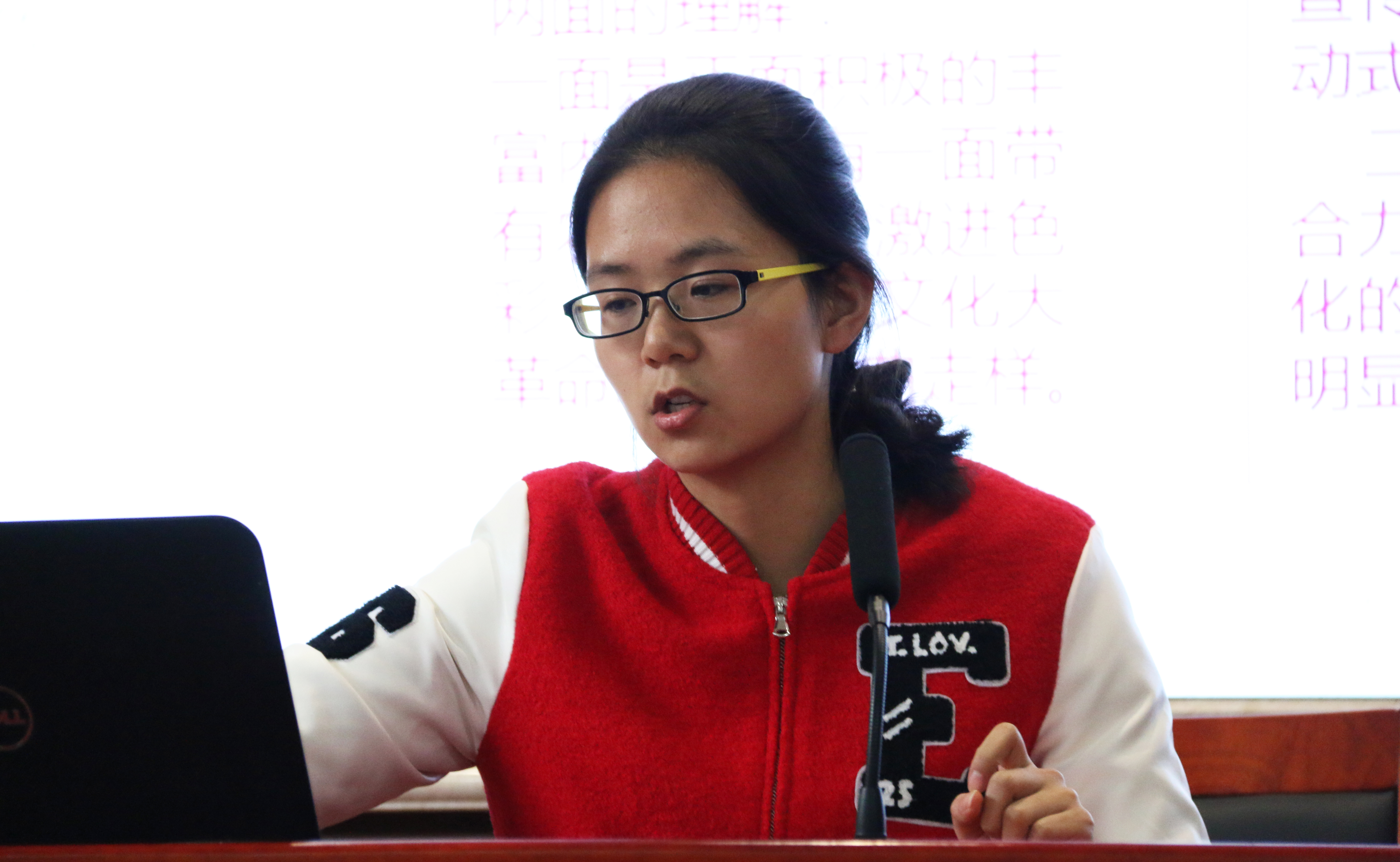 报告会现场,来自湖南大学、中南大学和8xbet体育的七位研究生同学先后对自己的报告进行讲解。“红色在中国人眼中是祥瑞之兆,尚红是中国的传统。”中南大学马克思主义研究生杨柳在本次报告会上对中国的红色文化进行深入讲解,首先介绍古今中外对红色文化的不同理解,着重讲解红色文化的产生、现实困境以及其当代价值。从五四新文化运动时期红色文化的产生到讲述红色文化在当代对教育、文化、精神的影响及价值,其每个方面都有独特的见解。杨柳在报告最后用自己的一句话鞭策在场的学生:“理想若星辰,红星照我去战斗;信念如长风,直挂云帆济沧海。” 文化的创新是在不停地反思与继承中进行的,我们应不断反思自己不断创新发展。