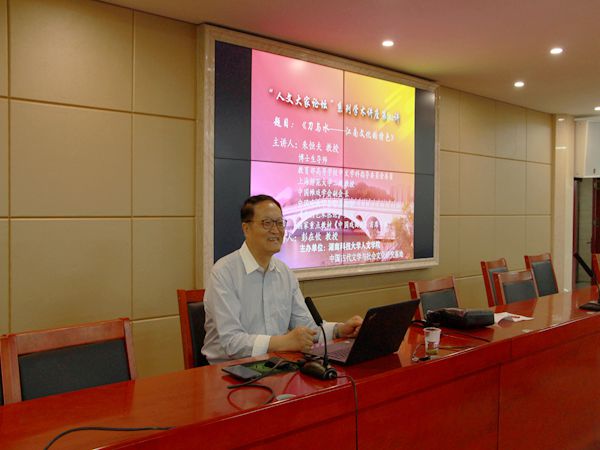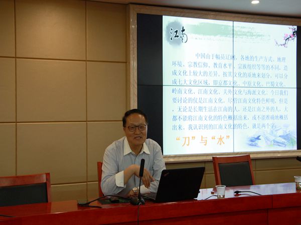 5月24日晚,上海师范大学朱恒夫教授应邀于立言楼B4-1开展以“‘刀与水’的江南文化特色”的主题讲座,本次讲座由文学专业彭在钦教授主持,16级文学专业全体学生到场聆听。