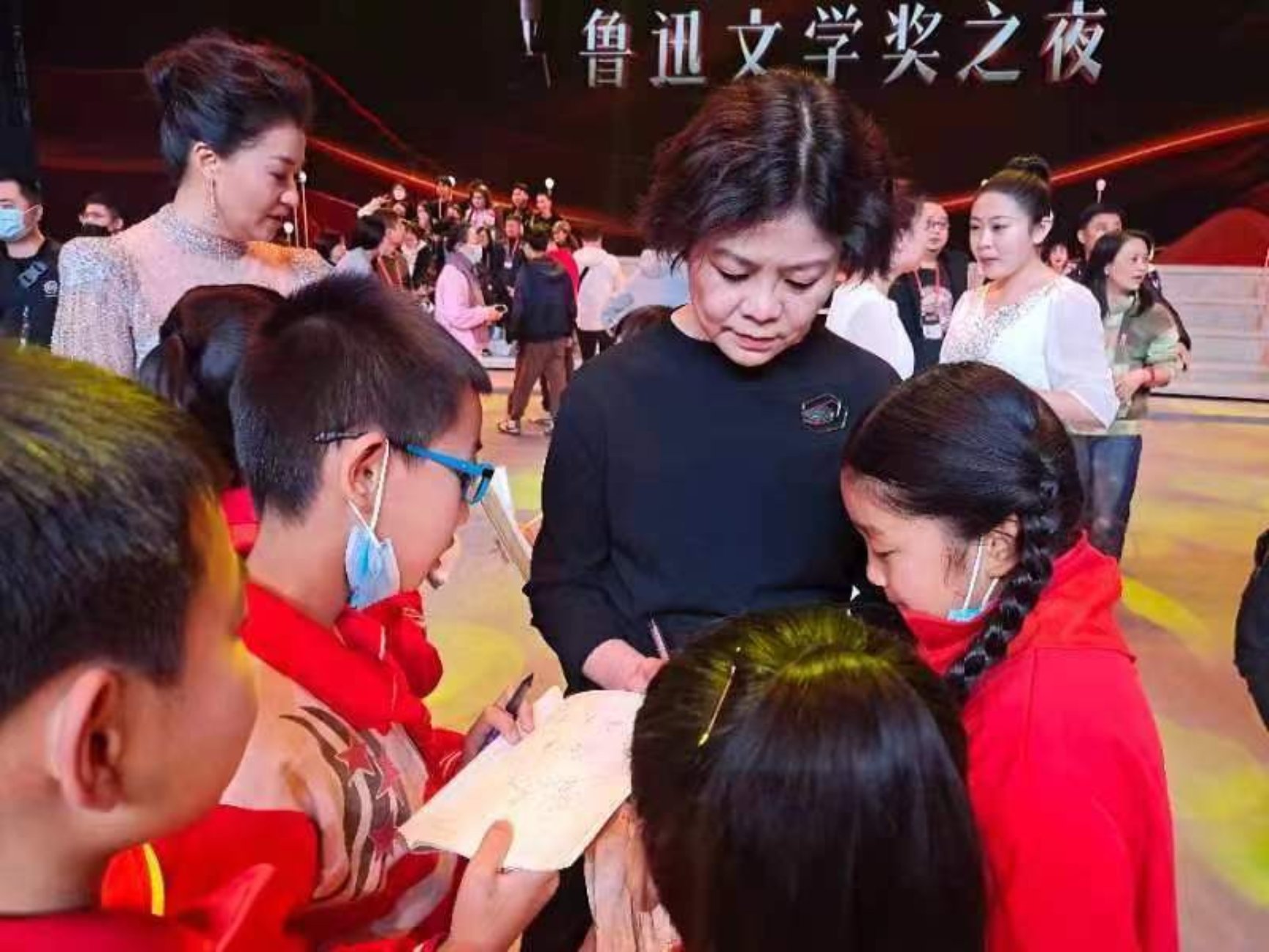 “我的家乡,房前屋后种满了金灿灿的橘子,可甜啦!我想邀请在座的叔叔阿姨爷爷奶奶去我的家乡,教我们写诗!”11月20日晚,在“中国文学盛典·鲁迅文学奖之夜”的颁奖晚会现场,一群来自怀化市会同县粟裕希望小学的“小诗人”们,向台下的作家们发出了一份温暖的邀请。晚会上,第二十届中央委员、中国作协党组书记、副主席、书记处书记张宏森、第二十届中央委员、中国文学艺术界联合会主席、中国作协主席铁凝也来到了“小诗人”中间,鼓励大家好好学习。