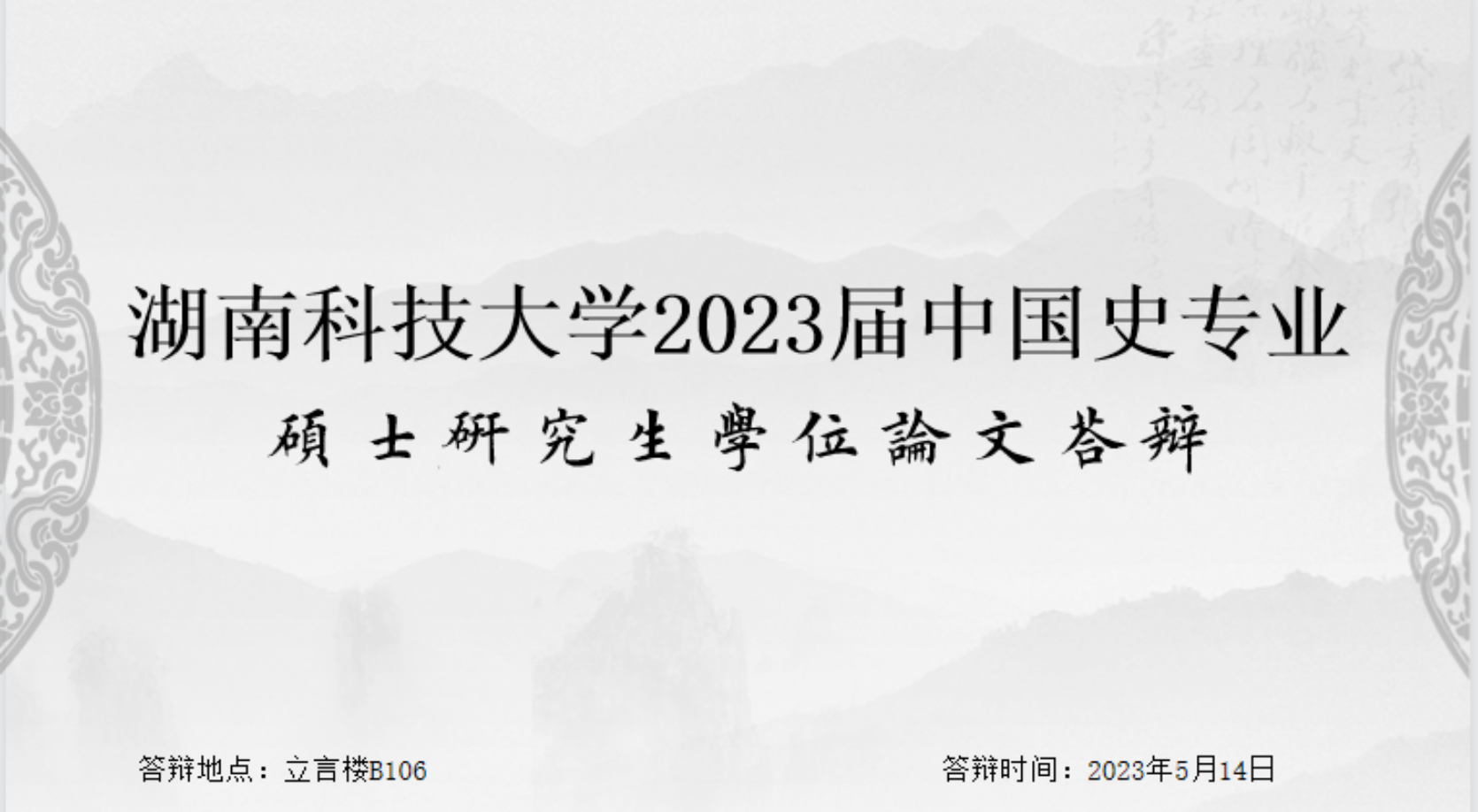 5月14日,8xbet体育2020级中国史专业硕士研究生学位论文答辩于立言楼B106如期举行。本次答辩邀请湘潭大学章育良教授担任答辩主席,湘潭大学吉成名教授以及我院徐红教授、金身佳教授、周方高教授、聂志军教授担任答辩委员。2020级中国古代史方向8位硕士研究生参与此次答辩。